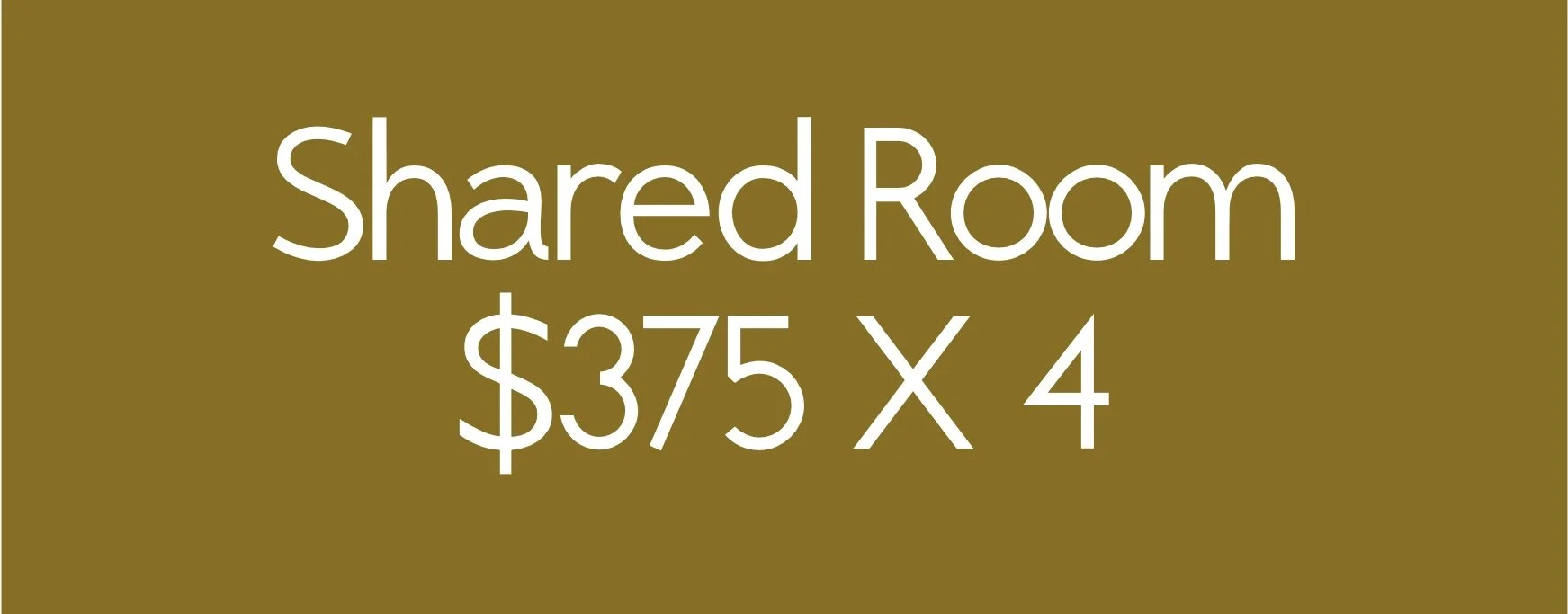 Please note SHARED ROOM is your own bed in a shared room. SHARED BED is sharing a bed with another attendee. This is a perfect option for anyone who wants to bring a friend!