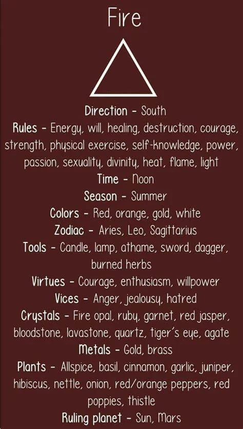For example: The element of Fire can be a powerful ally in the burning away of stagnant belief systems or removing unwanted circumstances; however, Fire can also be used to transmute and purify, or amp up one’s sex life. It is important to determine the intended goal and then choose your ally energies and plan your energy working rituals accordingly.