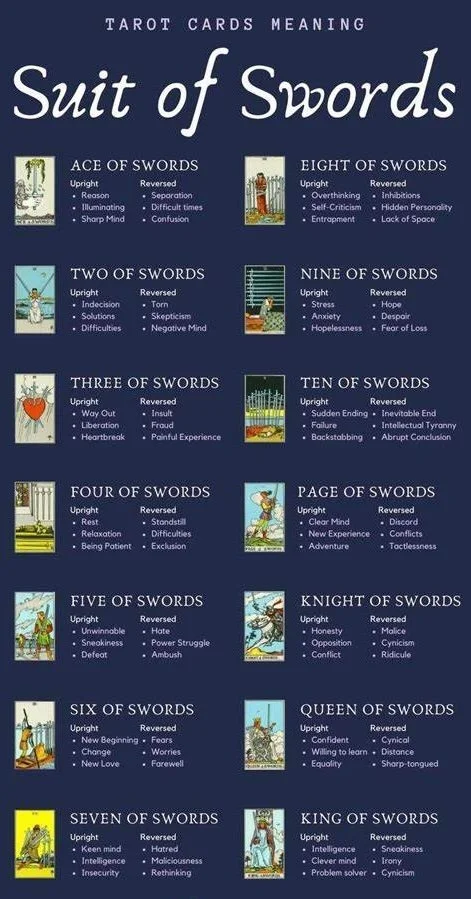 Swords - The suit of swords represent thoughts and are the element of air.