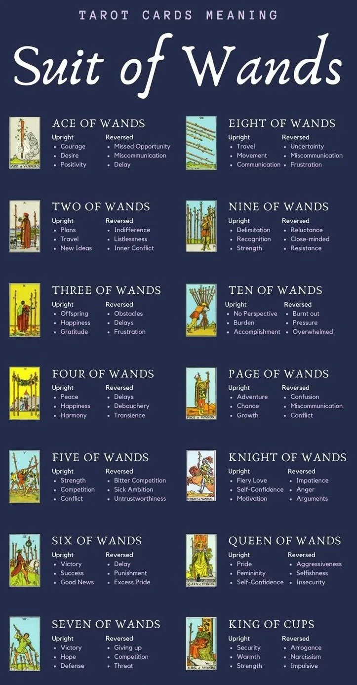 Wands - The suit of wands represents action and are the fire element of the tarot.
