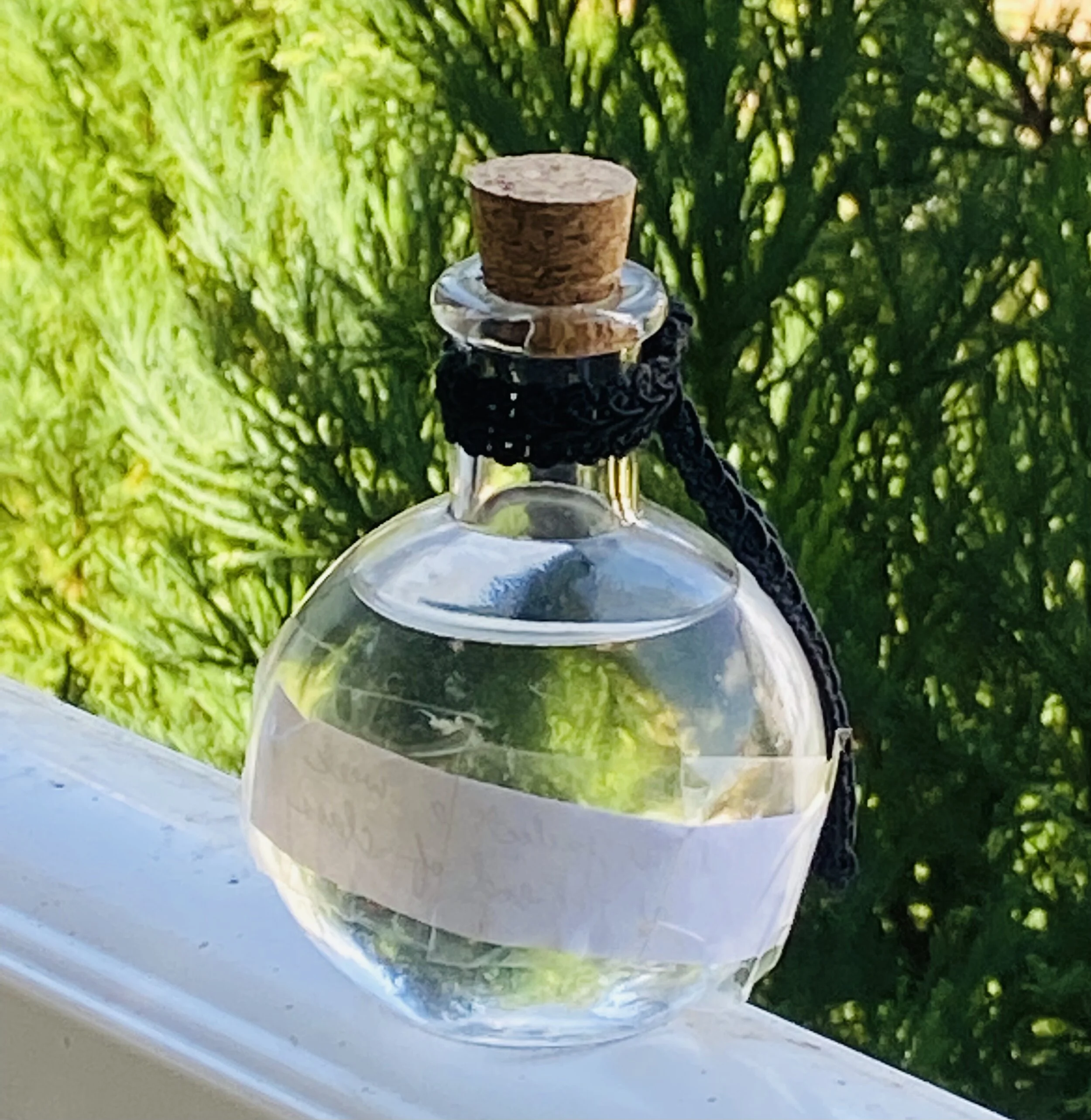Get a glass container filled with distilled water (holy water is great if you have access to it!)